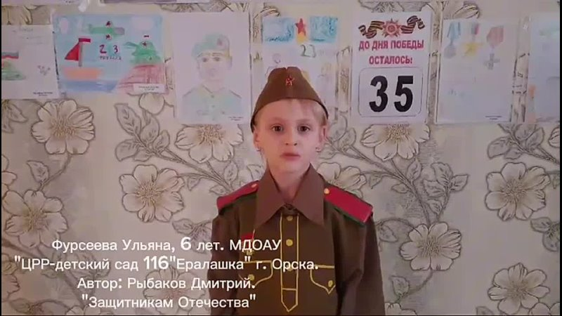 Акция «Читают дети о Победе», посвященная Году Защитника Отечества в России. Автор стихотворения Алексей Сурков «Красоту, что дарит нам природа, Отстояли солдаты в огне!»