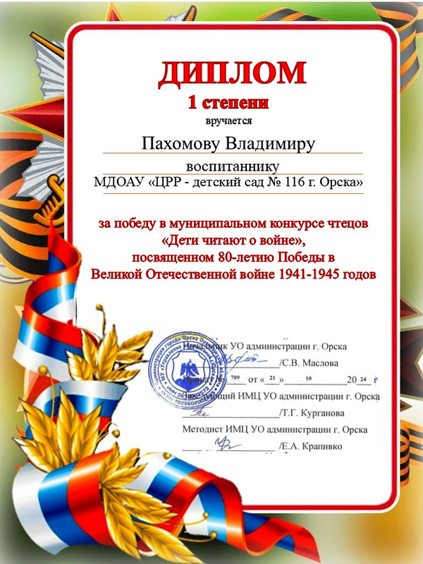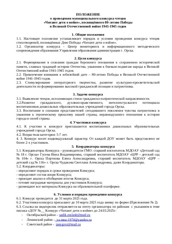 Положение о проведении муниципального конкурса чтецов «Читают дети о войне», посвящённого 80-летию Победы в Великой Отечественной войне 1941-1945 годов